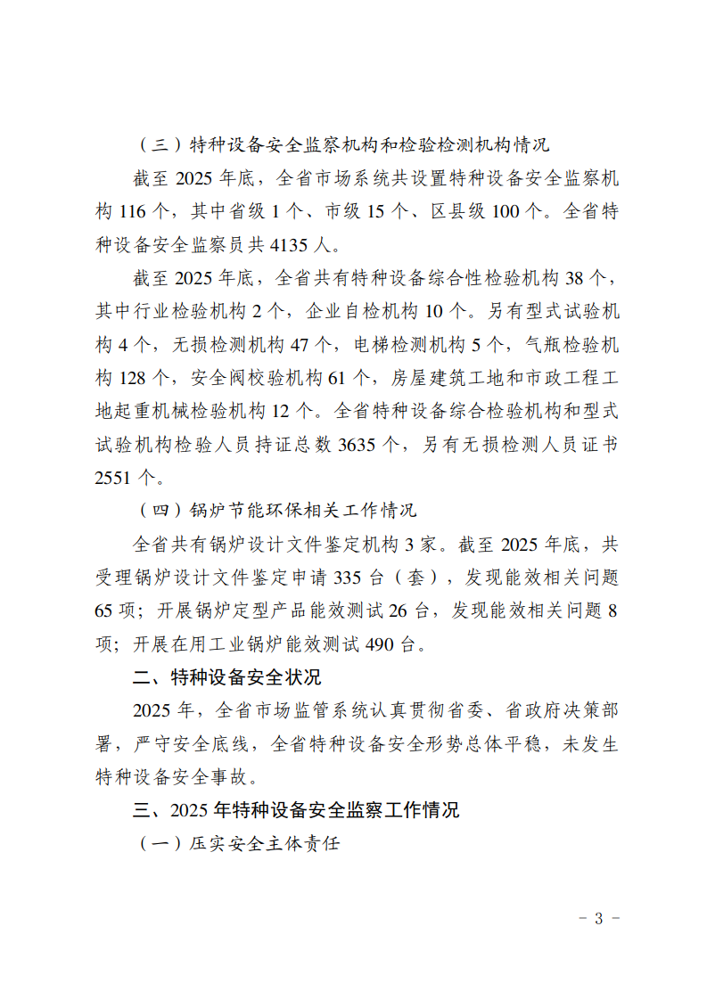 关于2025年全省特种设备安全状况的通报