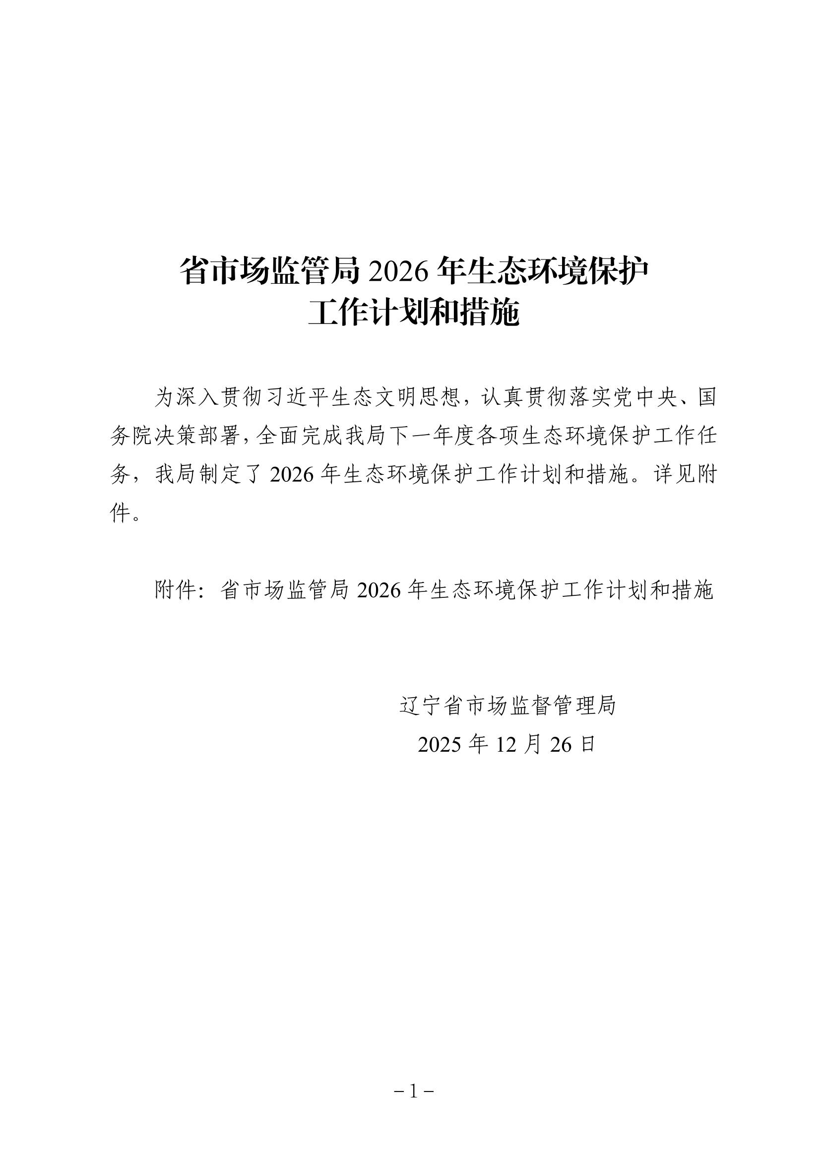 省市场监管局2026年生态环境保护工作计划和措施